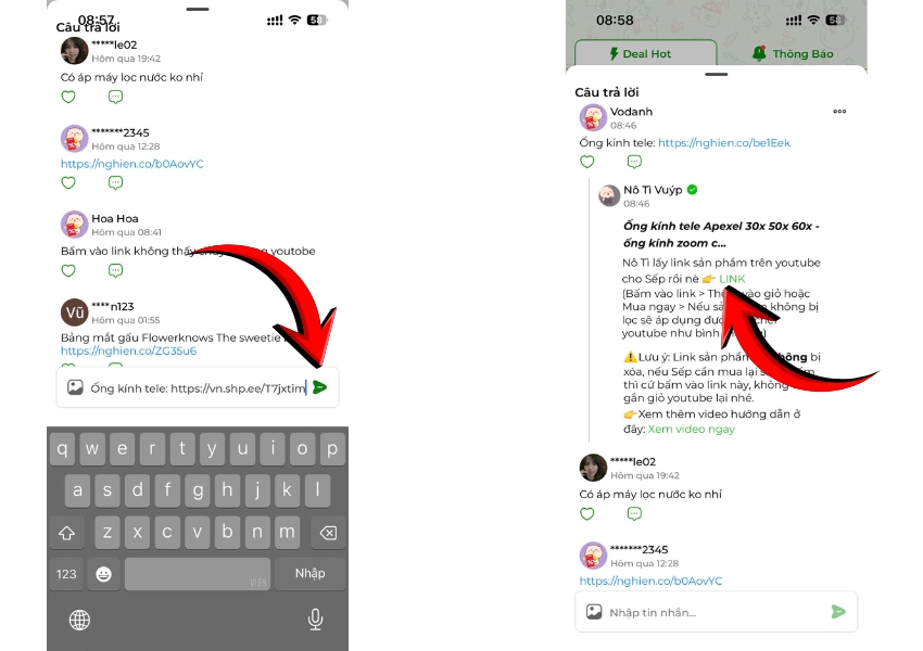 - Sau khi Nô Tì gửi Link cho bạn, bạn chỉ cần bấm vào link sẽ được đưa quay trở lại trực tiếp Shopee mà không cần bước trung gian phải qua Video Youtube như trước đây.