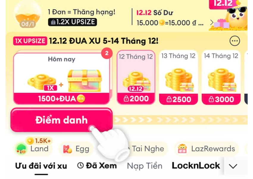 - Nghe thì có vẻ như một trò chơi khó khăn nhưng thực ra việc bạn cần làm là chỉ cần và điểm danh nhận xu hàng ngày từ bây giờ để chuẩn bị cho đợt Sale lớn. Mức xu nhận được sẽ khá lớn đó vậy nên đừng bỏ lỡ nhé.