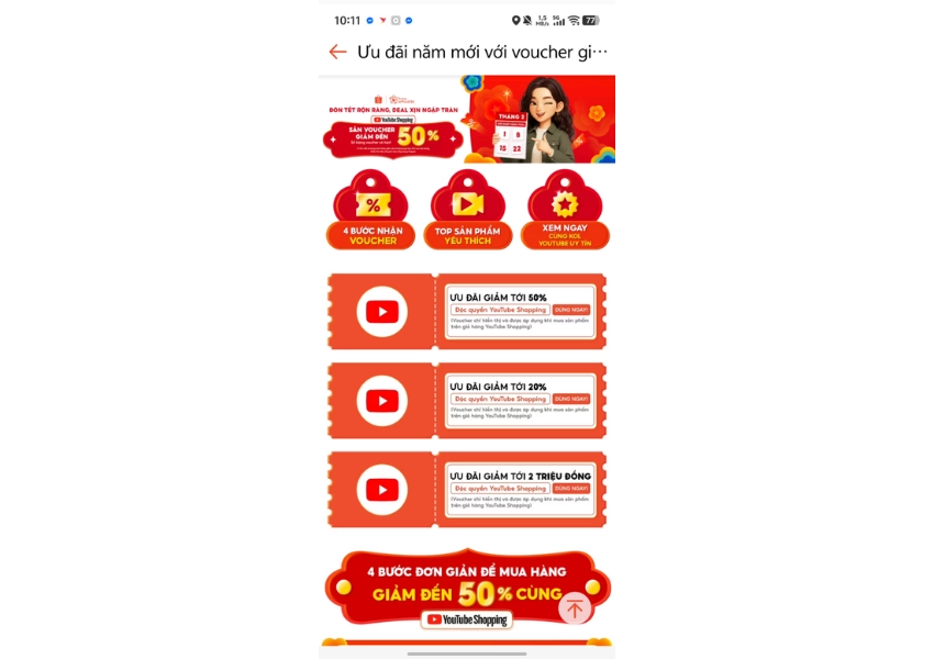 Nếu chưa lưu được mã Youtube 50% trên banner, có thể canh khung 9H để lưu mã back (mã thường có hạn sử dụng 1 ngày).